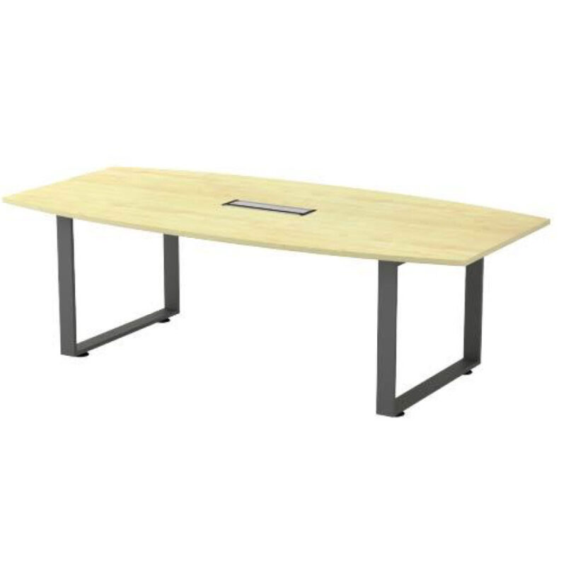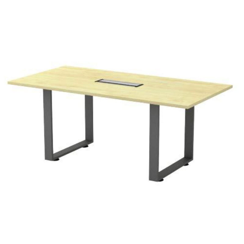 Rectangular conference table with metal flipper box and additional snake trunking.