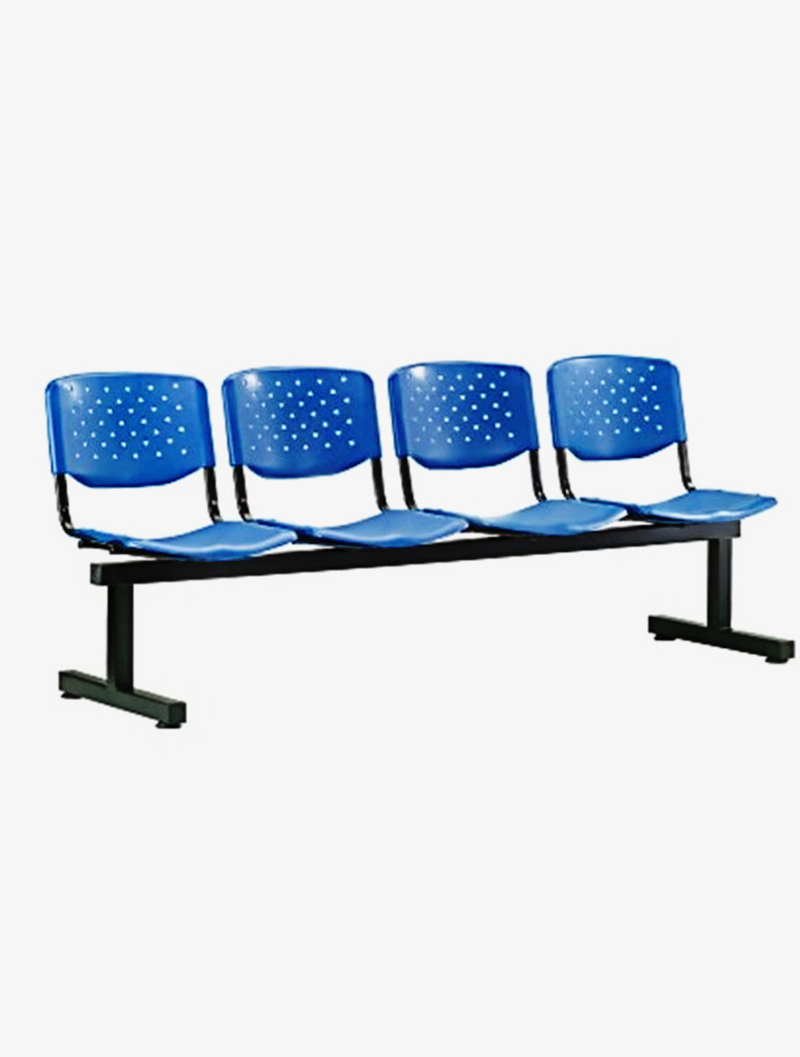 Four seater link chair c/w polyproylene shell seat/back and epoxy black base.