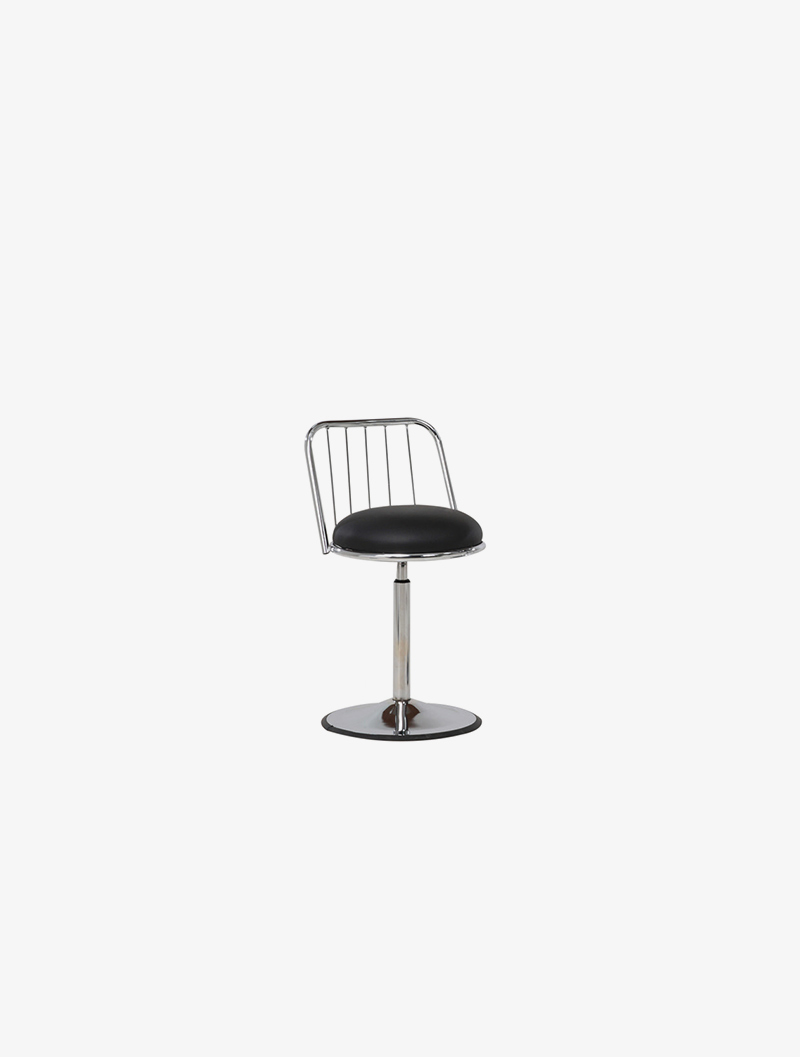 Low bar stool with chrome backrest c/w round metal plate stand.